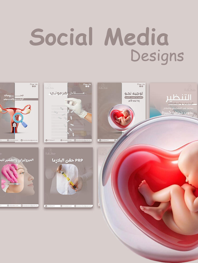 Dr. Zahra Hamdani is a specialist in gynecology and obstetrics, as well as aesthetic medicine. As part of this project, I designed a series of social media posts highlighting the services offered by the clinic, such as PRP injections, mesotherapy, skin rejuvenation treatments, and urinary incontinence treatment. The designs focus on conveying a professional and elegant identity while respecting the brand’s visual identity.